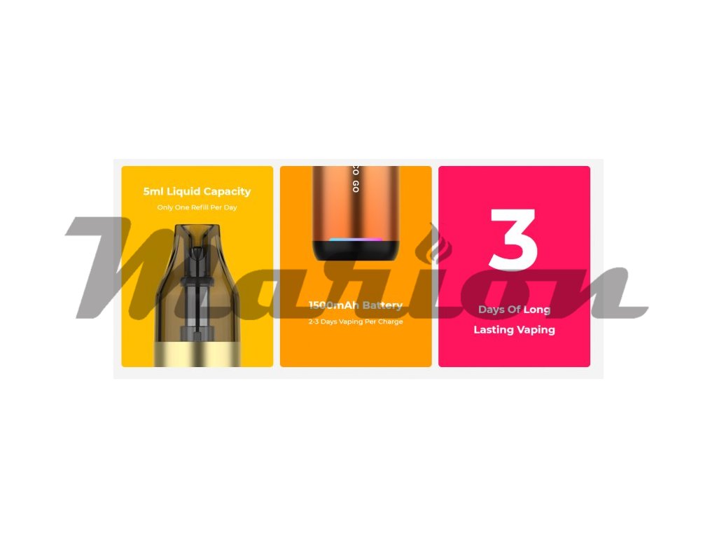Elektronická cigareta Vaporesso VECO GO je perfektní vapovací zařízení ve stylu pera pro začátečníky, kteří hledají jednoduchost bez kompromisů v kvalitě vapingu. Elegantní a stylový designe baterie disponuje vestavěným monočlánkem o kapacitě 1500mAh s rychlonabíjením typu USB-C 5V/2A a automatickým výkonem až 25W. Vyměnitelná cartridge (POD) je vybavena žhavící hlavou o odporu 0,6ohm a 0,8ohm s objemem nádržky 5ml. Díky magnetickému propojení s baterií lze cartridge jednoduše vyjmout a doplnit oblíbeným liquidem. VECO GO využívá technologii zahřívení spirálky COREX, která zajišťuje přesné podání chuti a delší životnost. Magnetická podložka umožňuje regulaci proudění vzduchu pro optimální nastavení.