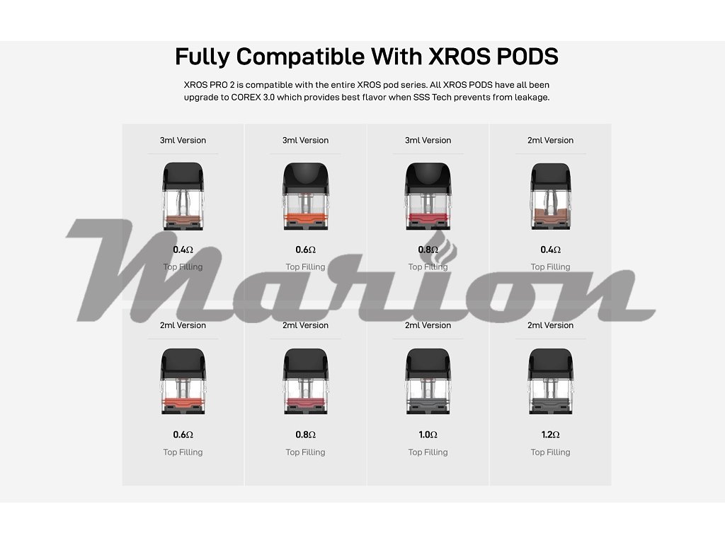 Pod CartridgeVyměnitelný Pod Cartridge o objemu 3 ml využívá praktický systém horního plnění, kdy jednoduše odejmete náustek a naplníte nádržku vaší oblíbenou e-liquidou. Konstrukce je navržena s důrazem na prevenci úniku e-liquidu. Cartridge je vybaven technologií SSS proti vytékání a je plně kompatibilní se všemi členy rodiny XROS včetně verzí s odpory 0,4 / 0,6 / 0,8 / 1,0 / 1,2 Ω. |