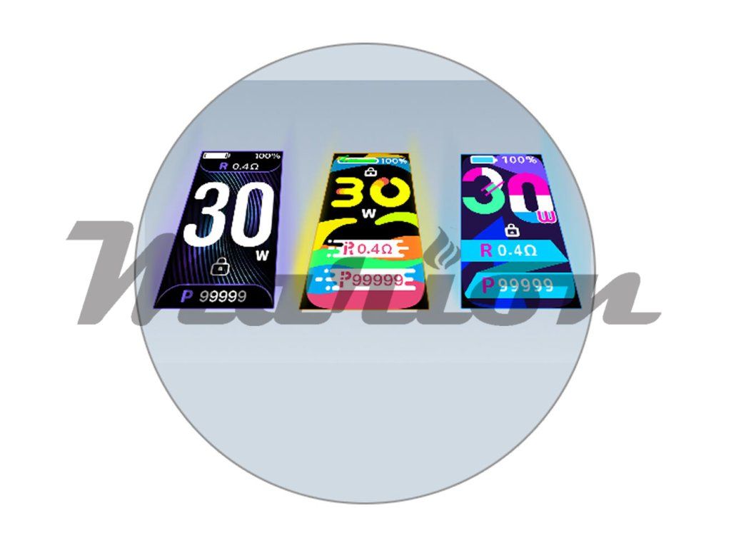 V přední části zdobí e-cigaretu Argus G3 obrovský 0.96" TFT displej v celobarevném provedení. Displej je hlavní dominantou celé e-cigarety, přičemž vás bude neustále informovat o všem důležitém, co budete během potahování potřebovat. Zobrazuje tak stav baterie, odpor připojené cartridge, aktuálně zvolený výkon, zámek e-cigarety nebo počet potahů. Obrovskou výhodou je také funkce vypnutí displeje během používání, která slouží pro výraznější úsporu baterie při provozu. Displej si tak můžete kdykoliv jednoduše vypnout a přitom nadále vapovat.