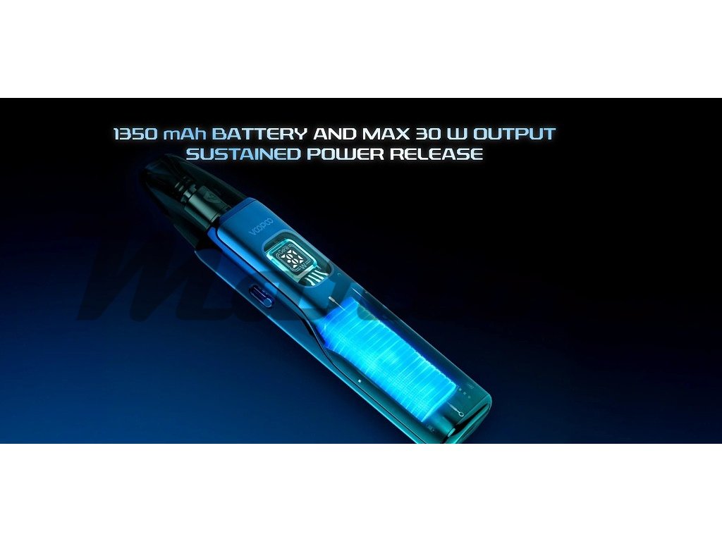 Revoluční zakřivený displej se bezešvě obtéká kolem přední a boční části zařízení. IML film design poskytuje futuristický kovový lesklý povrch s metalickým duhově prašným efektem. Displej zobrazuje všechny důležité informace včetně výkonu, stavu baterie a režimů vapování.