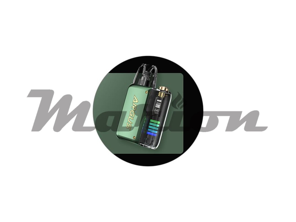 Krásně zpracované tělo zařízení ukrývá přehledný OLED displej a prvotřídní elektroniku s podporou výkonu až do 30W. Jako bonus na vás potom čekají hned dva režimy výstupu. Režim SHIFT umožňuje použití jedné ze tří přednastavených intenzit výkonu, režim POWER nabídne tradiční možnost regulace vlastního výstupního výkonu. Pro účely použití vyššího výstupního výkonu osadil výrobce model novým typem cartridge VooPoo Argus Pod Top Fill s nízkým odporem 0.4ohm. Cartridge ocení příznivci RDL vapingu.