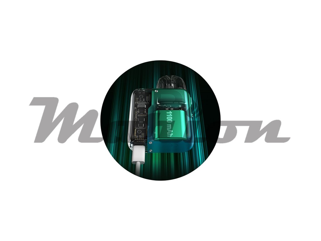 Kapesní tělo ukrývá integrovanou baterii s ohromující kapacitou 1100mAh, která se postará o nerušený požitek z vapování po celý den. Nesmí chybět ani podpora rychlého nabíjení s parametry 5V / 2A pro co nejrychlejší dobití vaší baterie kdykoliv bude potřeba.