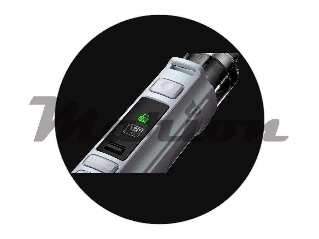 V robustním těle nesmí chybět ani integrovaná baterie s ohromující kapacitou. Ta činí krásných 3000mAh, zařízení tak hravě zvládne uvedený vysoký výstupní výkon a intenzivní vapování. Baterii si můžete kdykoliv pohodlně dobít pomocí portu USB-C, který se nachází na předním panelu. Dobíjecí port navíc disponuje speciální silikonovou krytkou, která ho chrání před usazováním prachu.