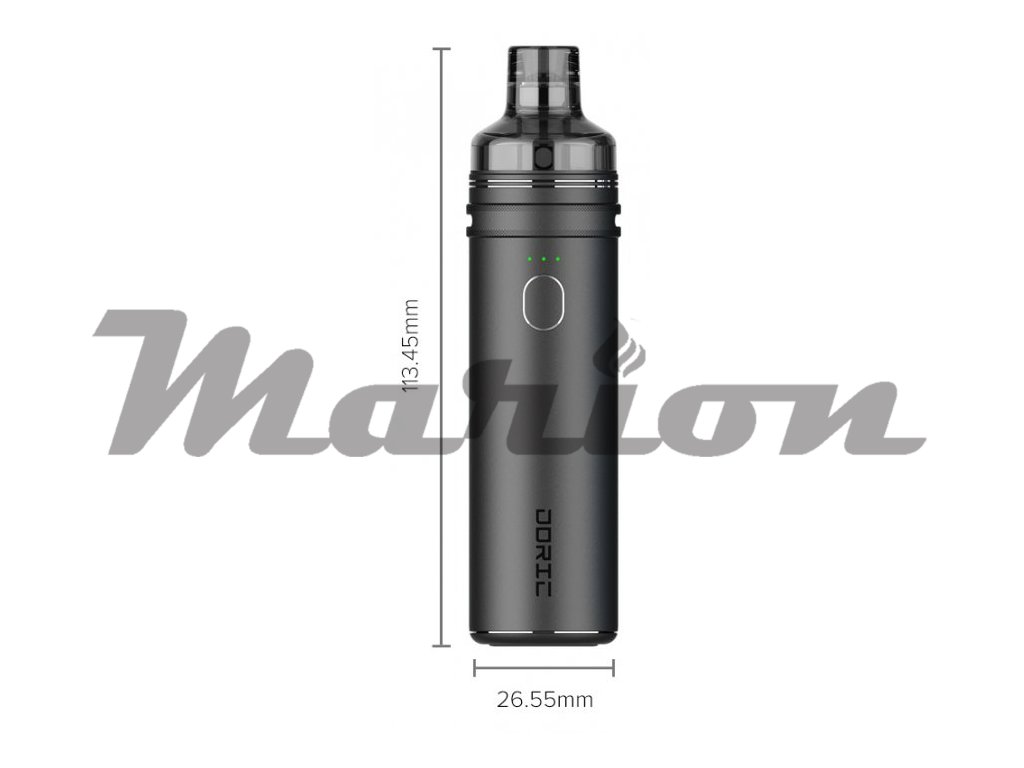 Není určeno pro náplně obsahující nikotin! VOOPOO Doric 60 je jednoduchá, ale výkonná elektronická cigareta, která je svými kompaktními rozměry ideálním společníkem na Vaše cesty. Pro celodenní vapování vyzbrojil výrobce baterii vestavěným monočlánkem o kapacitě 2500mAh, kterou aktivujete spínacím tlačítkem nebo pouhým potahem z cartridge. Pro rychlé dobití je v horní části baterie umístěn USB-C port. Vrchní částí zařízení je všem dobře známá cartrdige PnP o objemu 4,5ml (znáte např. z Drag S a Drag X)... Více info v detailním popisu