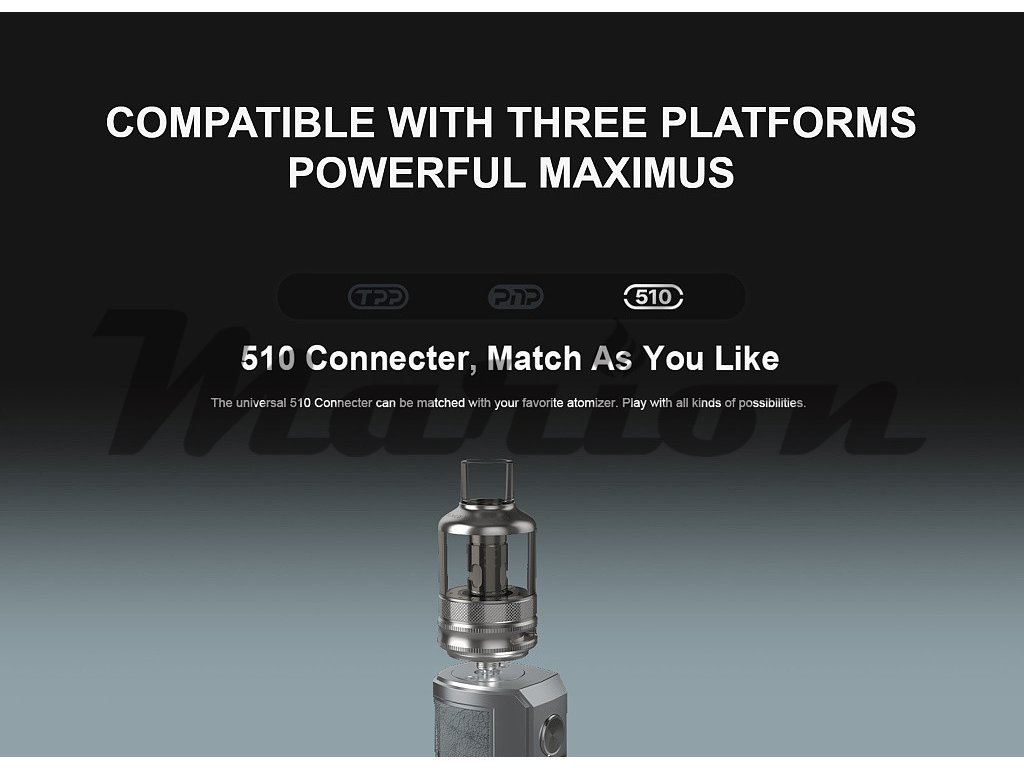 Grip Voopoo Drag 3 disponuje klasickým nejpoužívanějším 510 závitem a lze jej osadit téměř jakýmkoliv Clearomizerem disponujícím stejnou platformou.