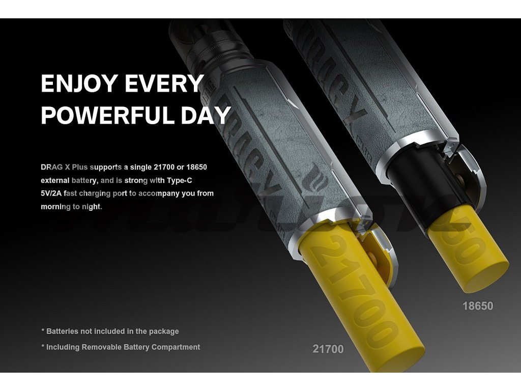 Špičkový nástupce velmi oblíbeného Pod Gripu Drag X, tentoktát s výkonem až 100W, tělo ze zinkové slitiny, na baterie 18650, nebo 21700, rychlé USB-C nabíjení, čip GENE.FAN 2.0 s rychlostí žhavení 0,001s, režimy Smart, RBA, Score Rating. Přehledný barevný TFT displej. Možno použít s jakýmkoliv Clearomizerem se závitem 510, případně s továními tanky TPP a PnP s 510 základnou.