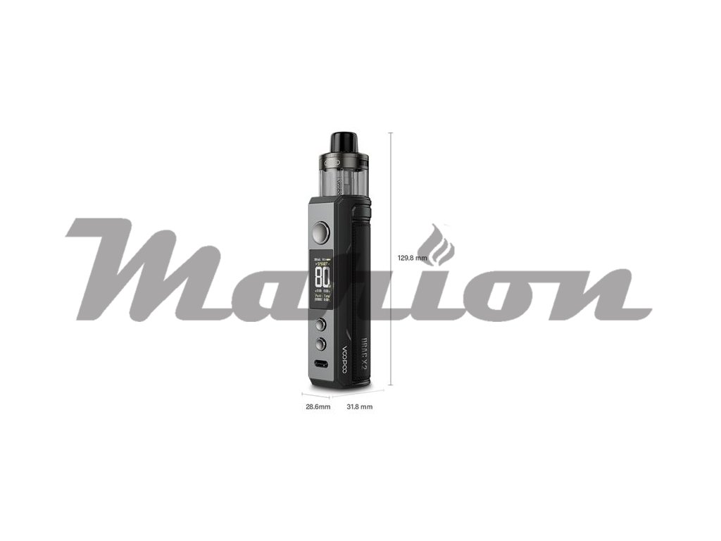 Populární design série Drag je zpět, model VooPoo Drag X2 nabídne ergonomicky vyváženou konstrukci z kvalitních materiálů pro co nejpohodlnější používání. Celkové rozměry e-cigarety se zastavily na 129.8 x 31.8 x 28.6 mm. V dlani potom působí bytelným a luxusním dojmem, k dostání je navíc v celé řadě barevných variant.