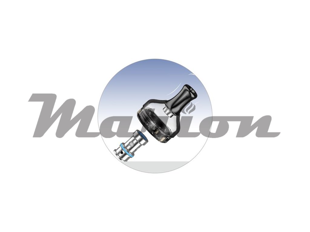 Ve vrchní části se nachází nová cartridge s názvem VooPoo PnP MTL Pod. Ta byla navržena speciálně pro používání na MTL vaping. Nabízí tak jednoduchou konstrukci a úzký náustek pro perfektní zážitek z klasického šlukování. Objem cartridge činí 2 ml. Je kompatibilní s rodinou žhavících hlav VooPoo PnP s odporem od 0,3 ohm.