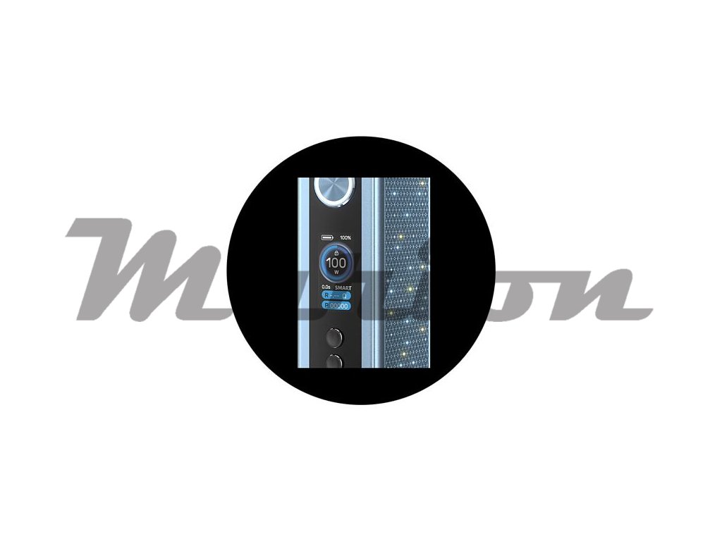Tělo modu ukrývá slot pro vlastní externí baterii typu 18650. Po vložení vlastní baterie můžete začít naplno využívat všechny funkce modu. Největší předností je potom podpora obrovského výstupního výkonu až 100W s plnohodnotnou možností regulace, velice snadno a rychle si tak upravíte výkon podle potřeby a můžete si vychutnávat svůj oblíbený styl potahu.